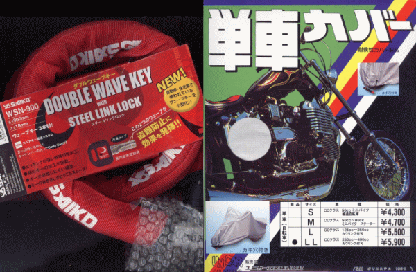 鍵穴付バイクカバーLL+ダブルウエーブキー 価格: 2,929円 レビュー評価: 5.0 レビュー数:1 ●鍵穴付バイクカバーLL1個とダブルウエーブキー1個セットでの販売です《単車カバー》●単車カバーLL 鍵穴付●250?400cc カウリング付可●オフロードやアメリカン等の特殊車種や年式等によっては適応しないものがありますので、ご了承ください。●サイズは大きめをお求めください。(一度開封された商品は返品・交換はいたしませんのでご了承下さい。)●耐久性カバー製品●品質:ポリエステル100%●表示:シルバーコート●ユニカー工業株式会社《ダブルウエーブキー》●ダブルウエーブキーWSN-900●ダブルウエーブキー1個●ウエーブキー3本付き●長さ900mm、太さ18mm●スチールリンクロック ▽▼▽単車 Supported by 楽天ウェブサービス |
